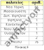στον Πίνακα 6. Κυριάρχησε η πολιτεία της Νέας Υόρκης (με ποσοστό 87%). Ακολούθησαν οι πολιτείες της Μασαχουσέτης και
